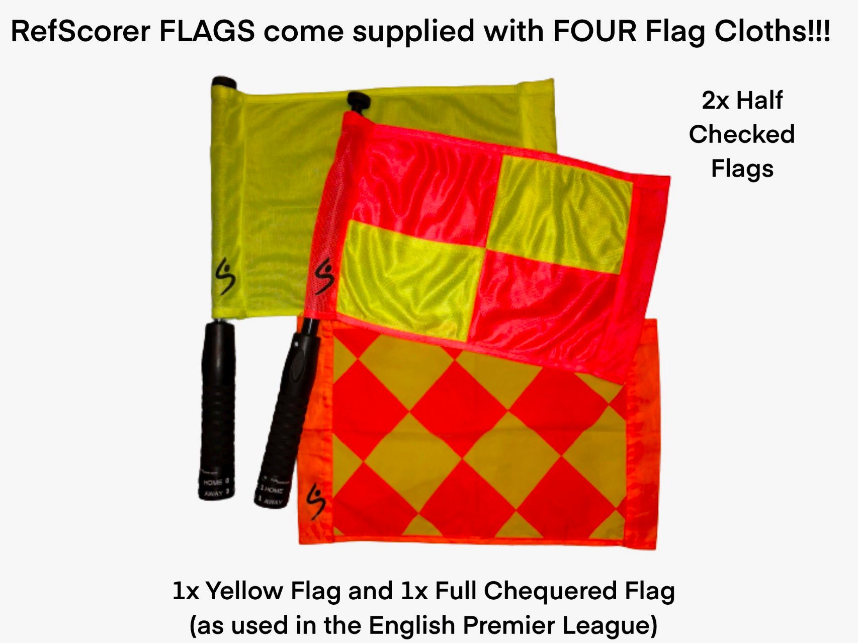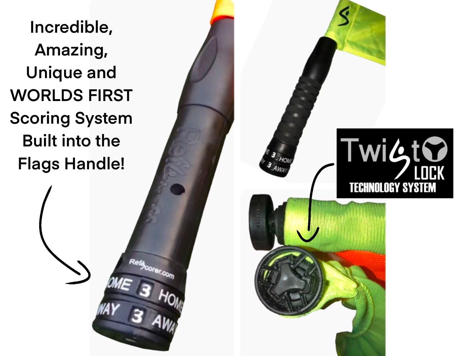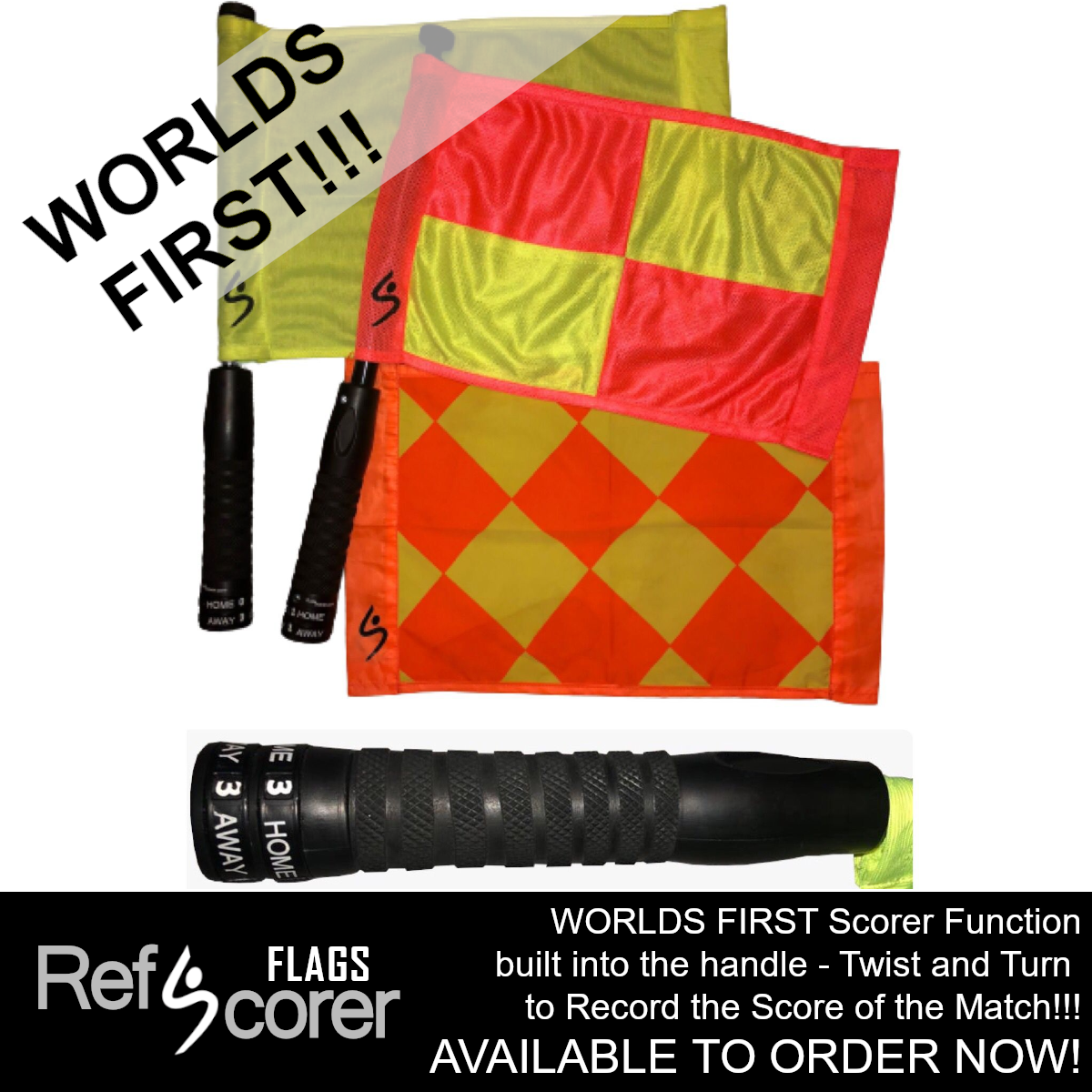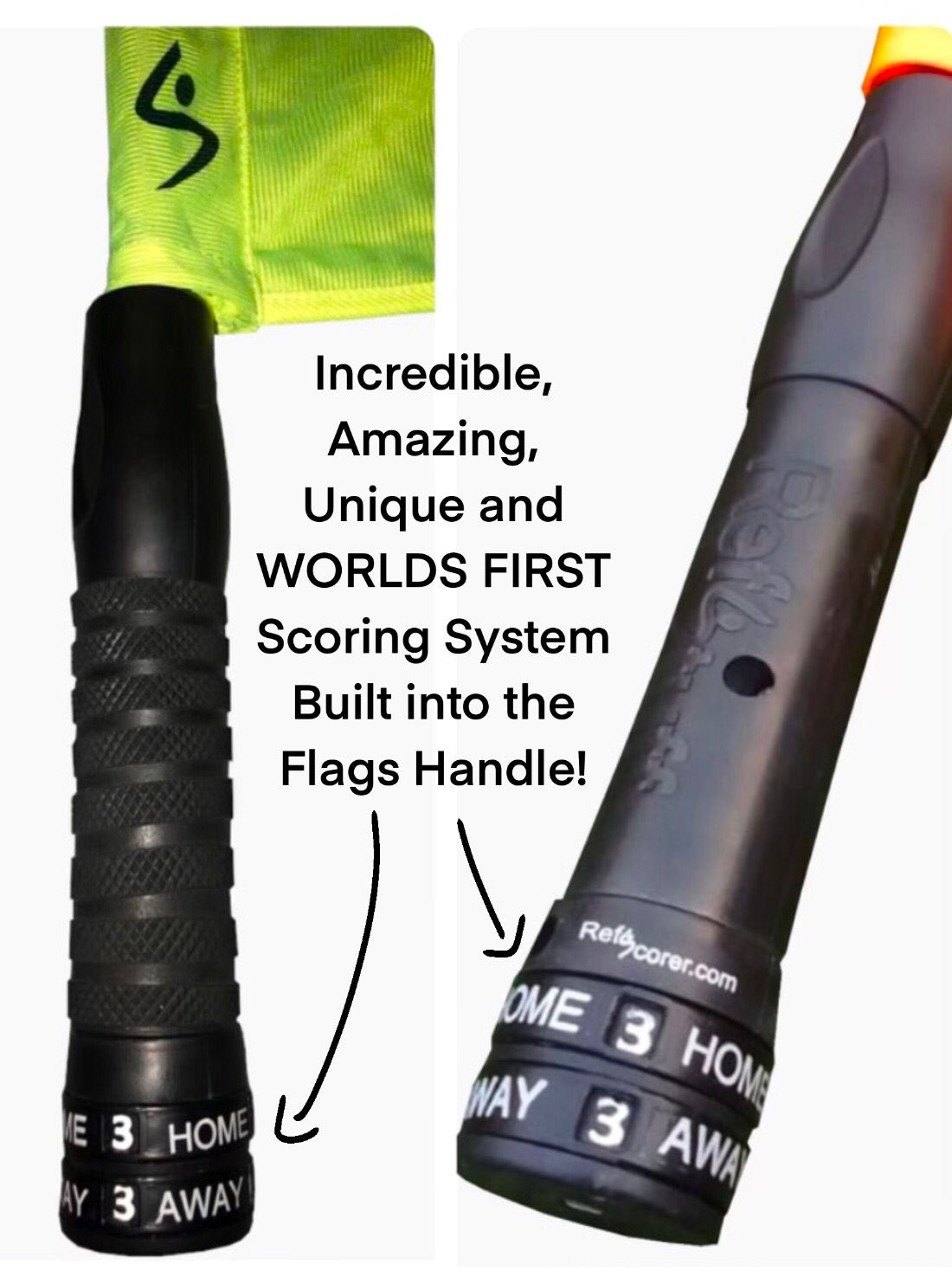 [code_snippet id=13 format] RefStuff RefScorer FLAGS – Referee Flags (pair) Assistant Referee Linesman Flags, now with unique and WORLDS FIRST Scorer Function built into the handle – Twist and Turn to Record the Score of the Match!!! Another Worlds First Design, Creation and Invention from RefStuff and RefScorer.com  Assistant Referee’s / Linesman will now be…