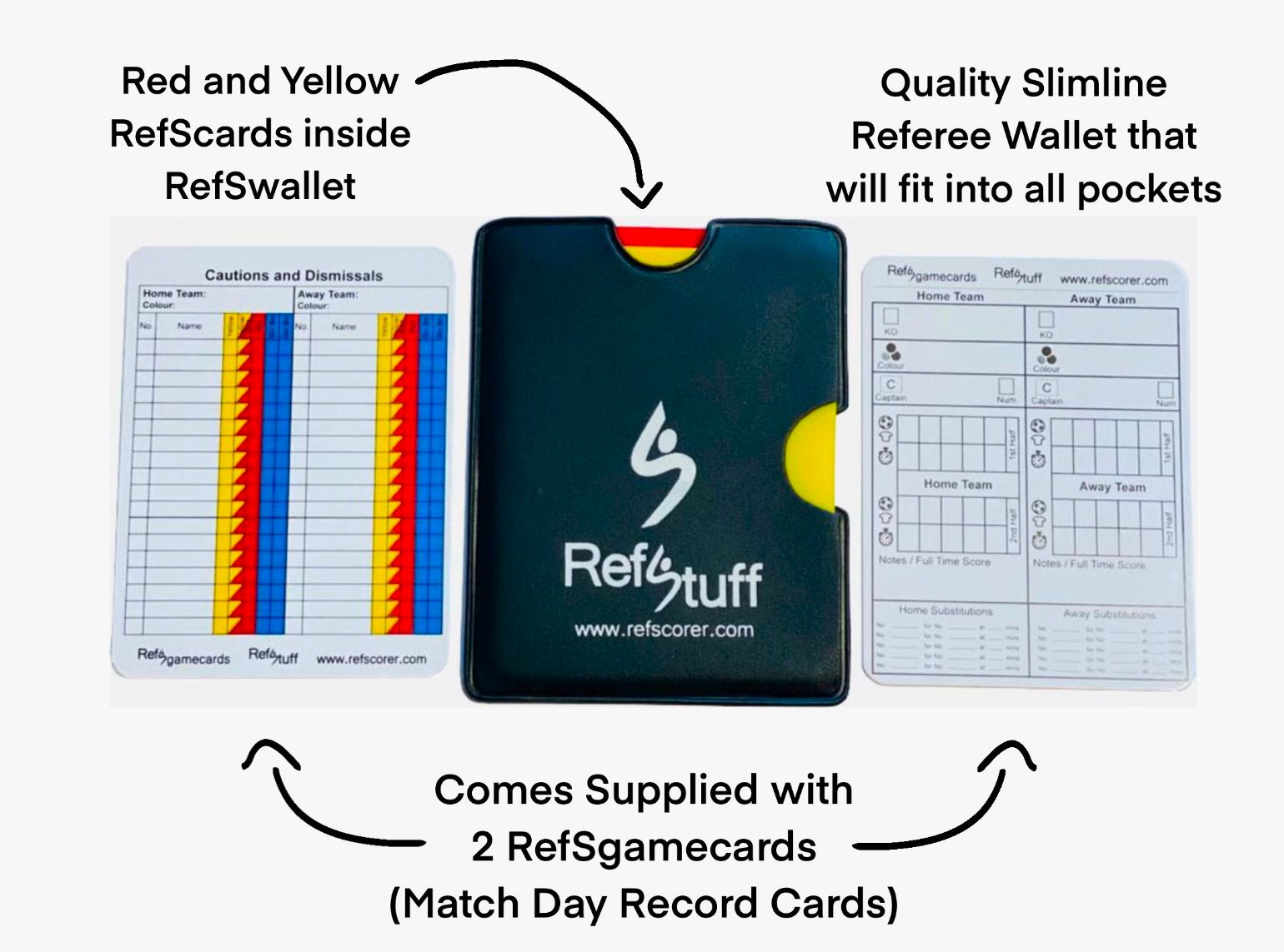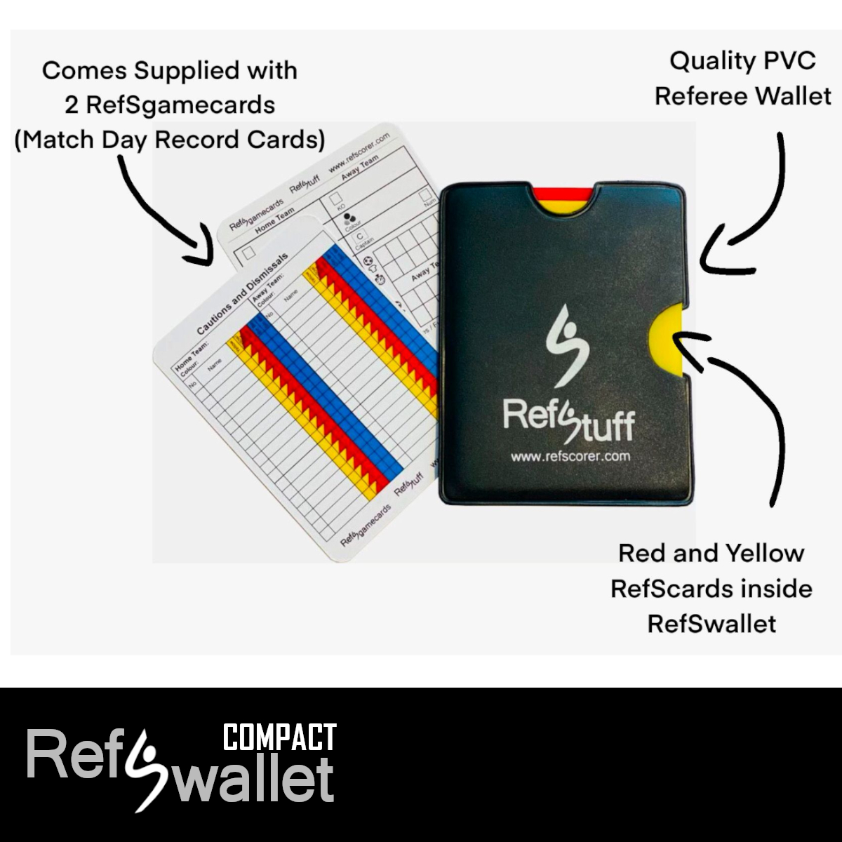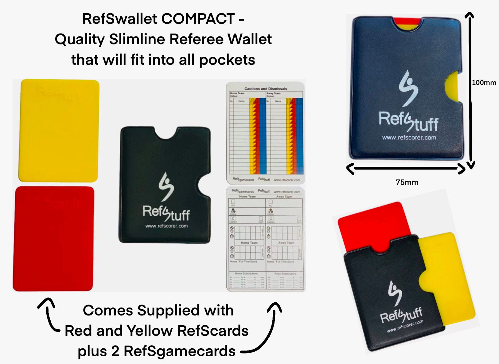 [code_snippet id=13 format] RefSwallet COMPACT – Wallet and Card Set RefStuff and RefScorer.com present to you the RefSwallet COMPACT! A perfect and slimline Referee Wallet that will fit into all pockets, shirts and shorts, front and back! Fabulous for recording match day information whilst not being bulky in your shirt or shorts. Ideal for all…