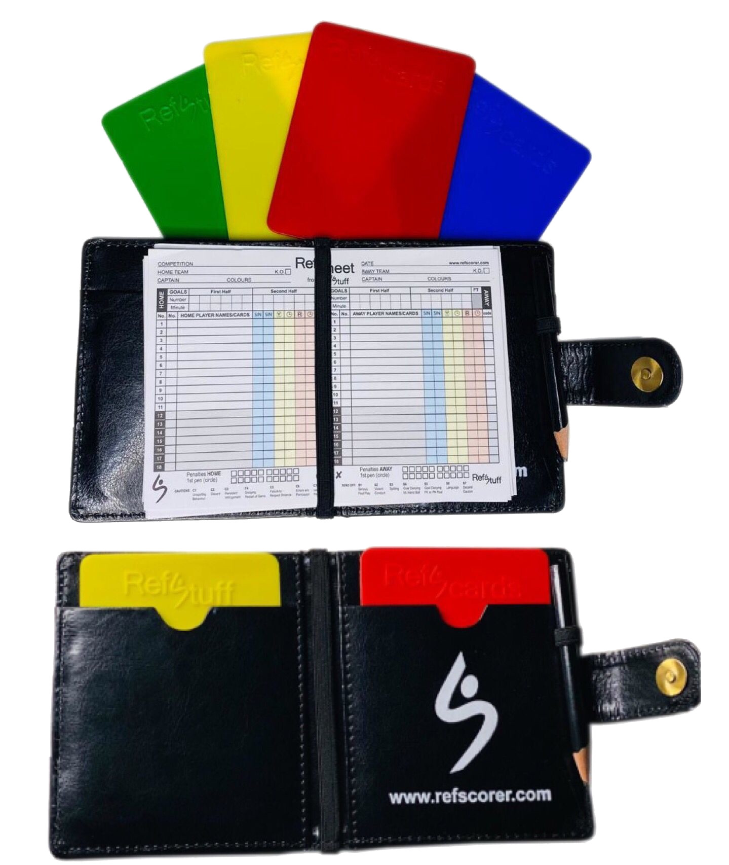 [code_snippet id=13 format] RefStuff RefSwallet Football Soccer Referee Wallet Notebook Scorepad. The NEW and improved slimmer version of the fabulous RefSwallet is a premium gold standard soft leather bound match day Referee Wallet and a real quality item. This Referee Wallet really is the best in the business and there really is no better Match Day Referee Wallet currently available worldwide…until now! The RefSwallet comes…